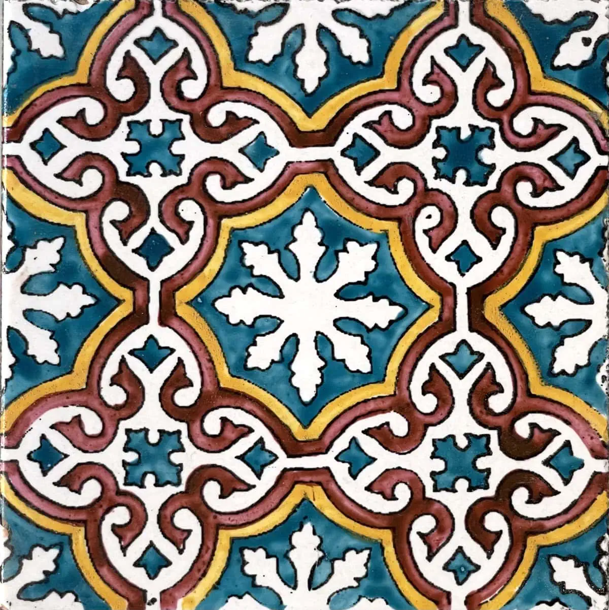 hand painted tile in morrocan pattern design