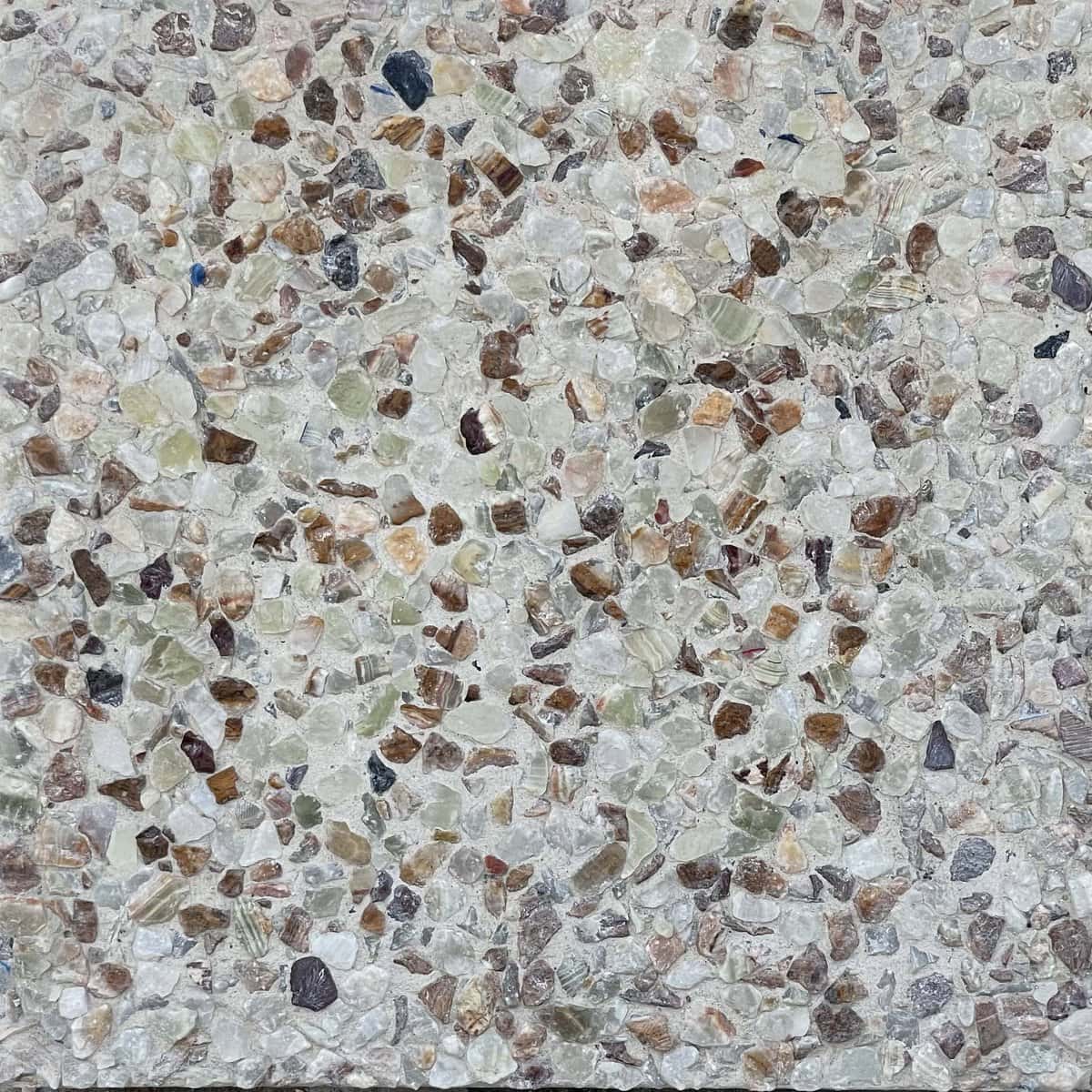 Washed Terrazzo exposed aggregate tile with white base and Onyx marble chips