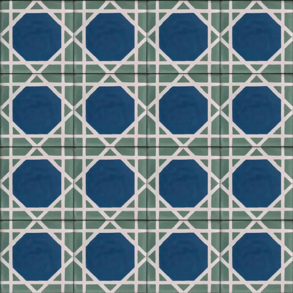 Moroccan pattern tile STAR design in white blue and green color