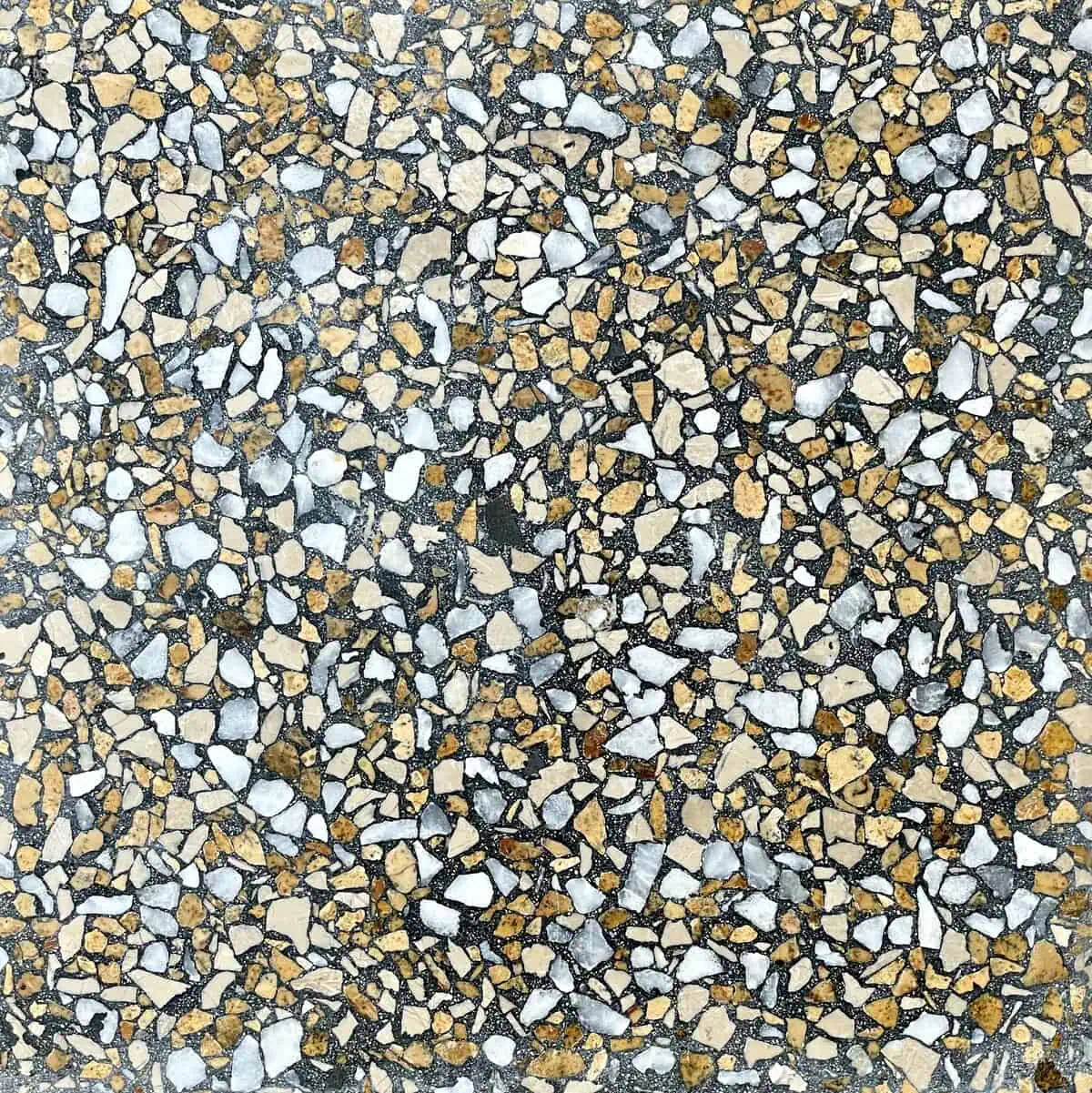 Terrazzo tile with black base and grey, beige, yellow & white marble chips SW2/V2/CY2/CB2/B360F (Reference Image Size:12″12″)